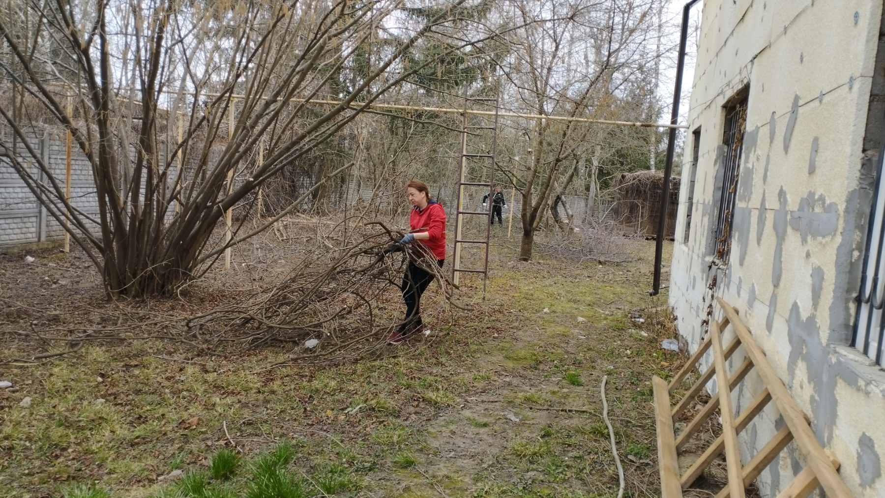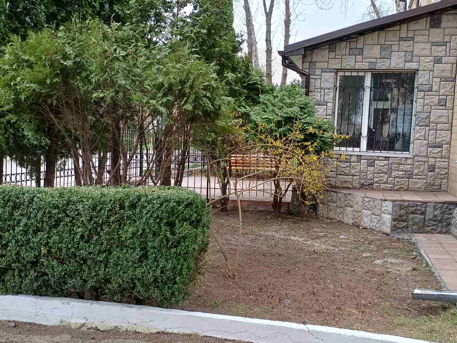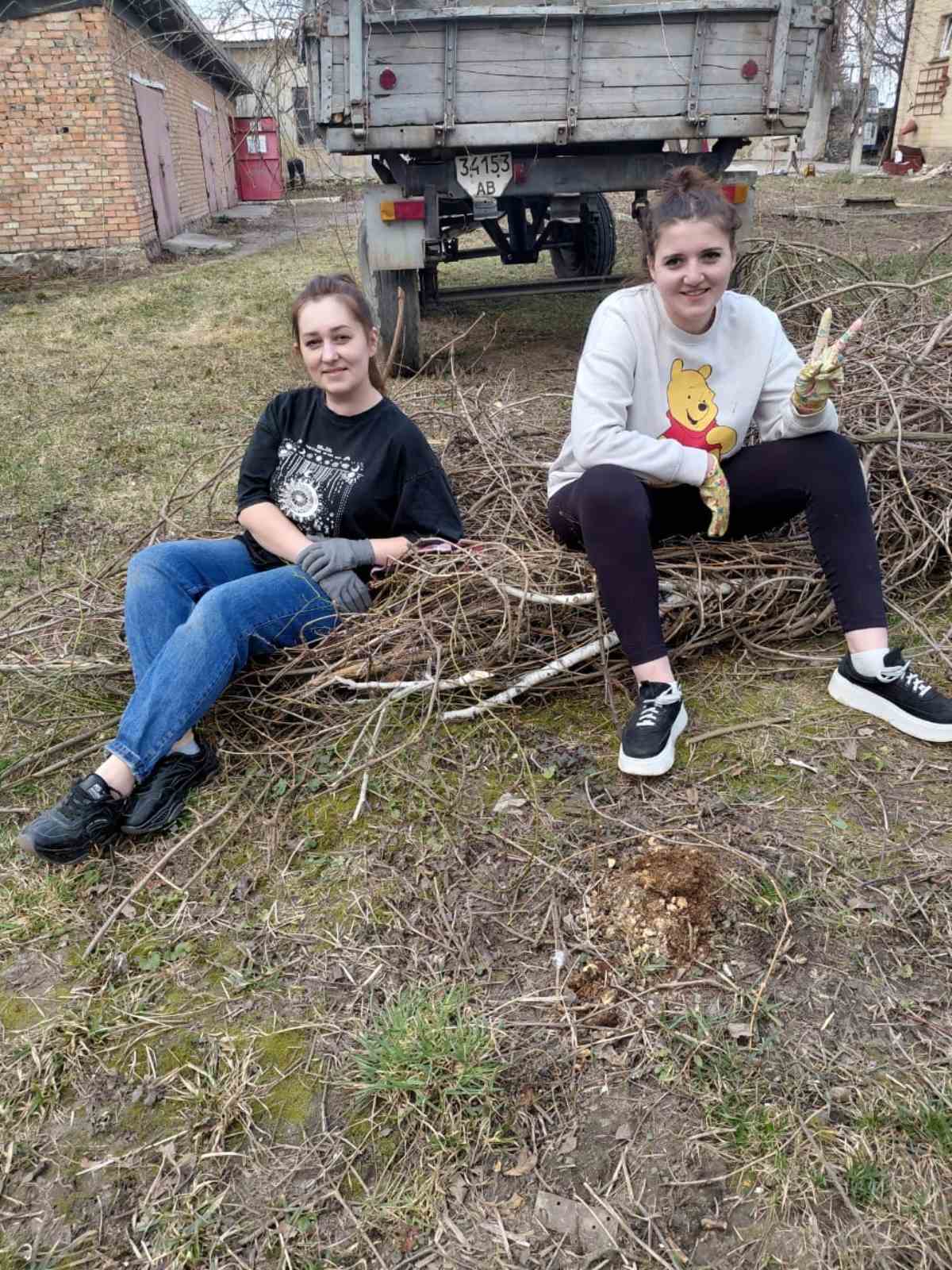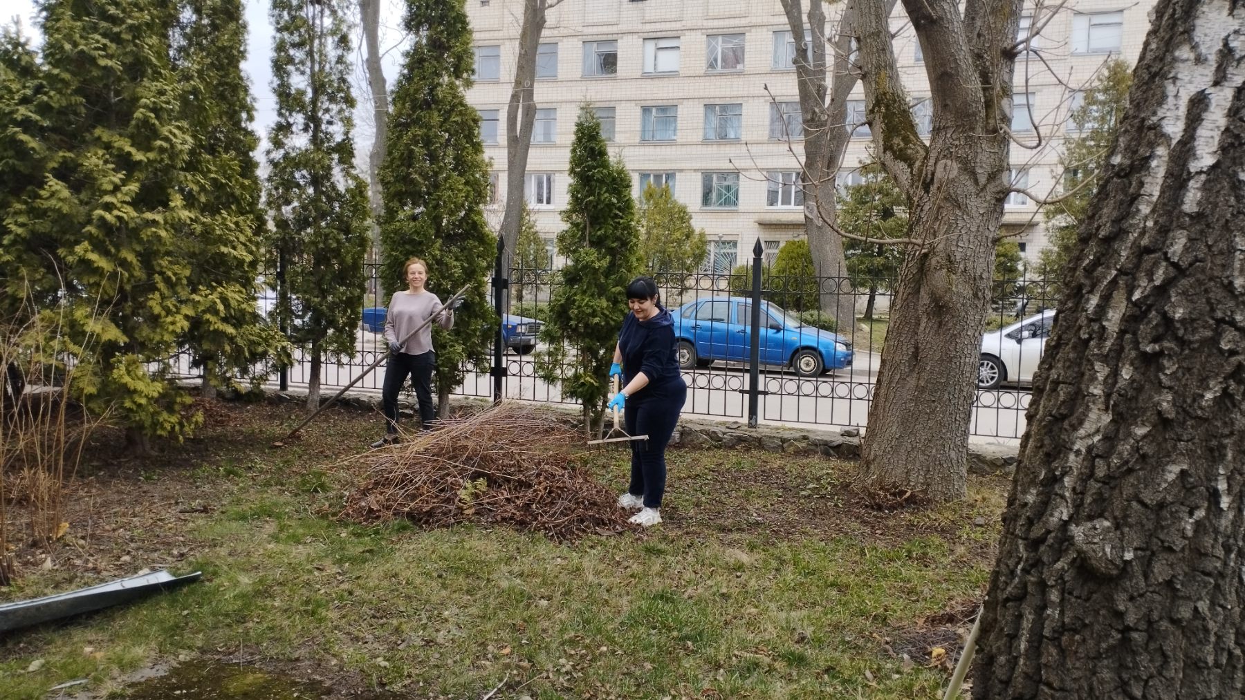Здійснено обрізку дерев, декоративних кущів, прибирання сміття та сухої трави, побілено бордюри.